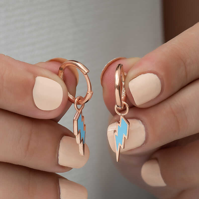 Dış görünüşüne özen gösteren kadınlar için modaya uyumlu şekilde tasarlanan en özel küpe modelleri bu koleksiyonda yer alıyor. Her biri farklı bir tarza ve kullanıma hitap eden küpe modelleri ile sizler de göz alıcı ve büyüleyici bir stil ortaya çıkarabilirsiniz. Fosforlu mavi şimşek küpe, gençlerin ve kendisini genç hisseden kadınların stiline uyum sağlayabilecek özgün modeller arasında yer almaktadır. Bu küpe doğum günü hediyesi, sevgililer günü hediyesi veya özel günlerde tercih edilebilecek mükemmel bir seçenektir. Gümüş fosforlu mavi şimşek bayan küpe; 925 ayar gümüşten imal edilmiştir. Gümüş üzerine rose altın kaplama yapılmıştır. Rose kaplama yapılan gümüş küpe modelleri parlaklığını uzun süre muhafaza eder ve oksitlenmesi gecikir. Tüm bayan küpelerde olduğu gibi bu küpe modeli de el emeği ile üretilmiştir. Gümüş ve değerli taşlar nedeniyle belirtilen ortalama ürün ağırlığında ± %10 sapma olabilmektedir.