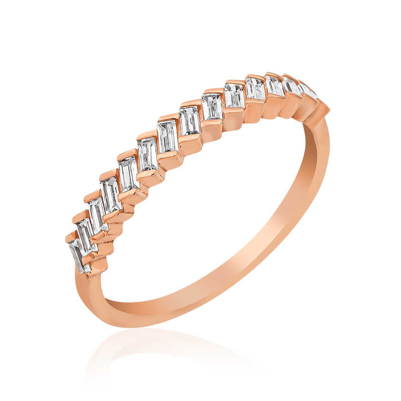 Teslimat: 1 x Gümüş Rose Sıralı Baget Taşlı Bayan Yüzük