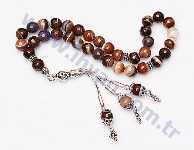 Ürün Adı: "Akik Taşı Tesbih (925 AYAR GÜMÜŞ Fasetli 8mm)"