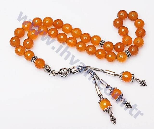 Ürün Adı: "Akik Taşı Tesbih (925 AYAR GÜMÜŞLÜ Fasetli)"