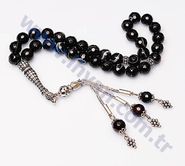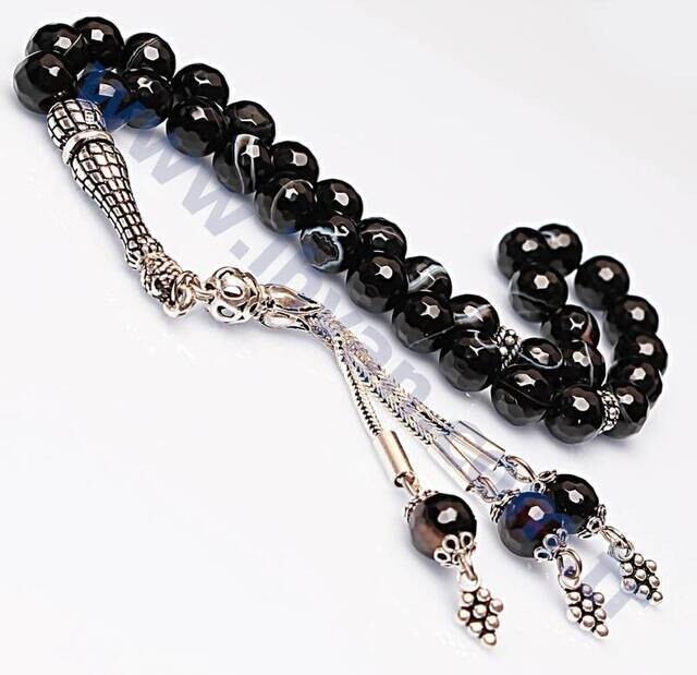 Ürün Adı: "Akik Taşı Tesbih (925 AYAR GÜMÜŞLÜ Fasetli)"