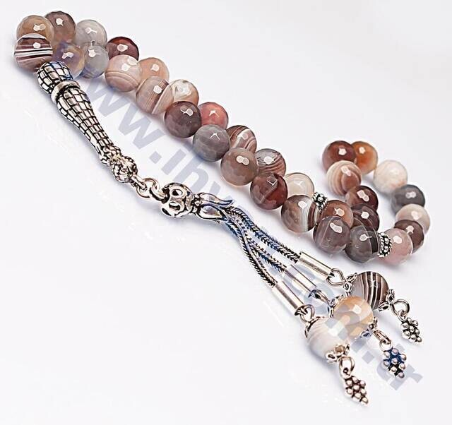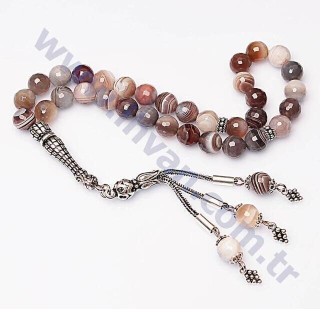 Ürün Adı: "Akik Taşı Tesbih (925 AYAR GÜMÜŞLÜ Fasetli)"