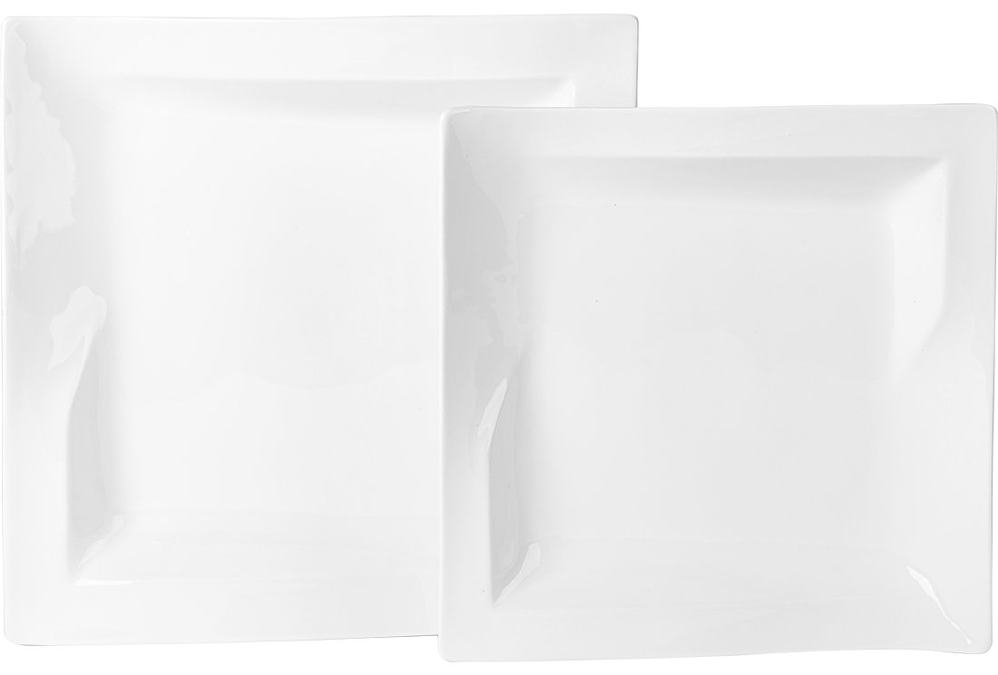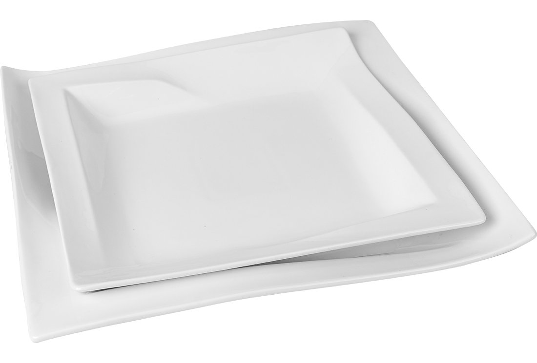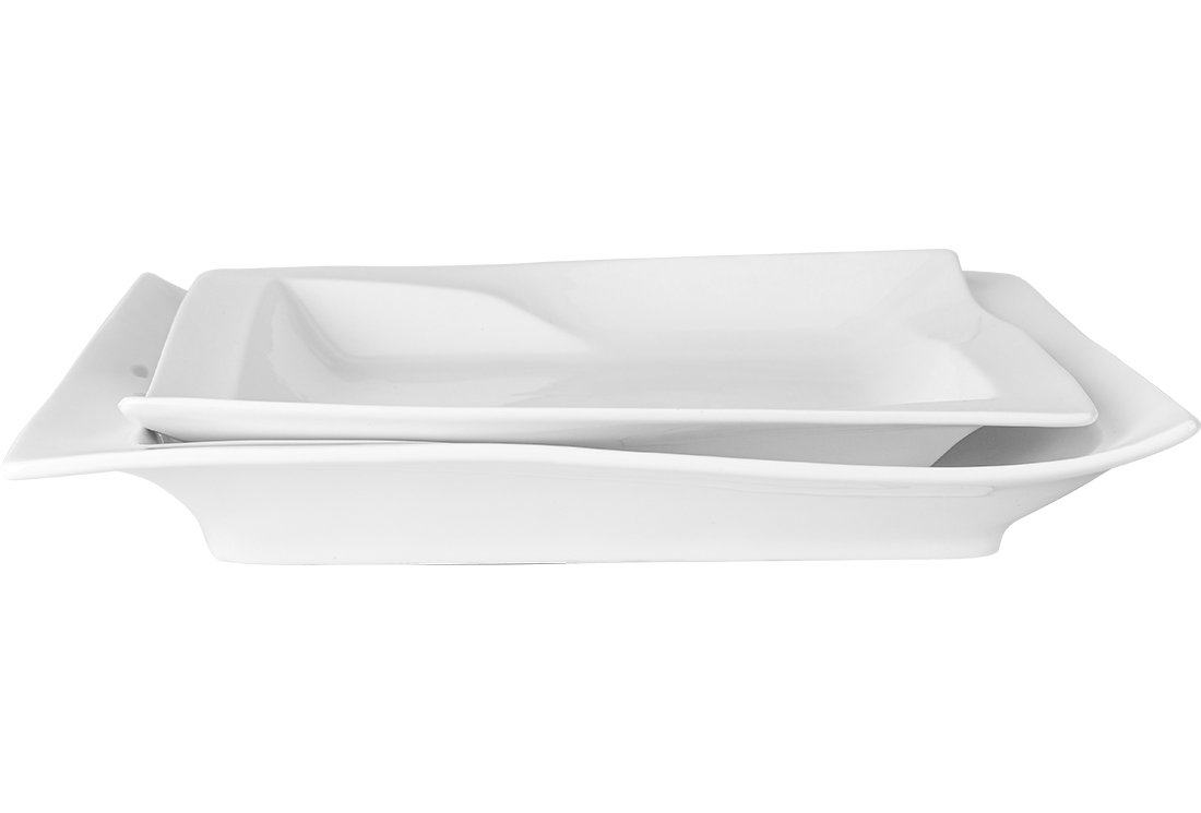 Teslimat : 1 x Almina 2 Parça Servis Kase Tabak Seti Kare Dalgalı | Beyaz | AL-2172