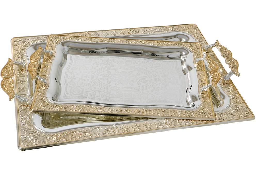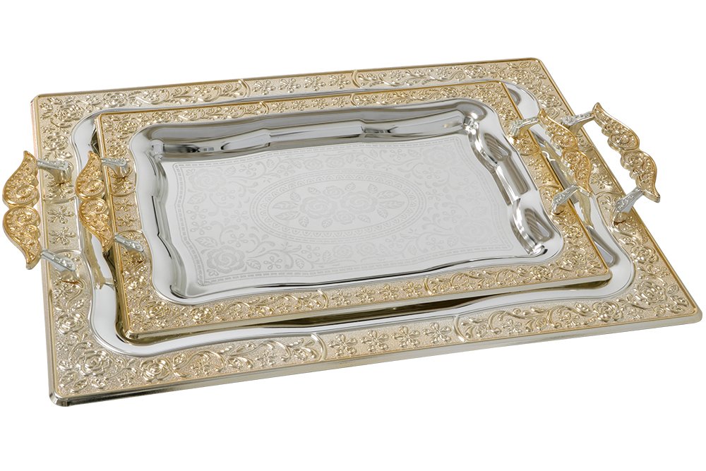 Teslimat: 1x Almina 2 Parça Servis Tepsisi | Altın Gümüş | AL-0962-4-G