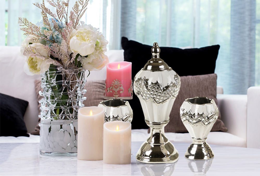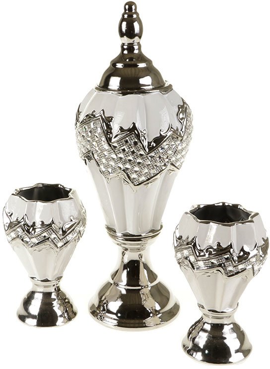 Teslimat: 1 x Almina 3'lü Dekoratif İşlemeli Vazo Seti | AL-8174