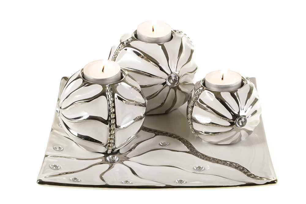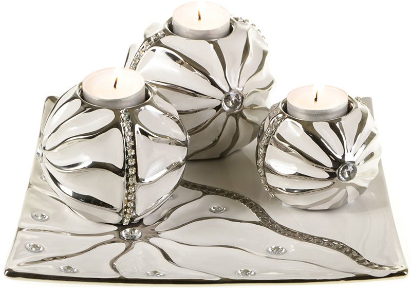 Teslimat: 1 x Almina 3'lü Dekoratif Mumluk | Beyaz | AL-3490-Weiss
