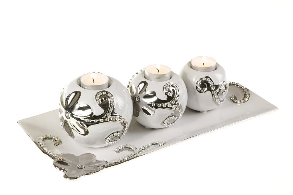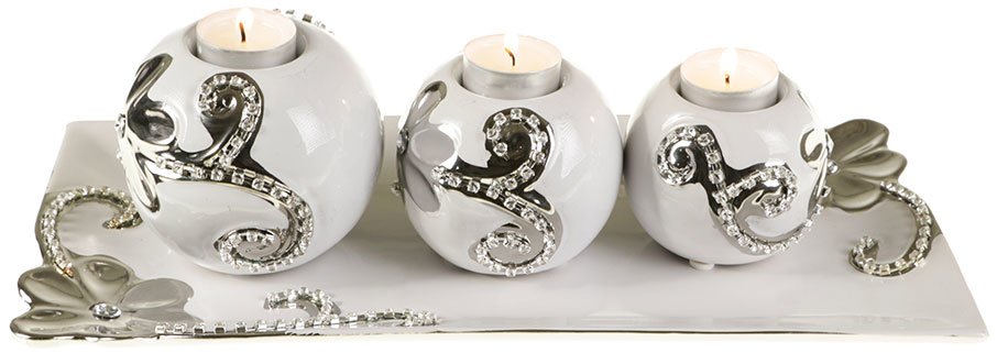 Teslimat: 1 x Almina 3'lü Dekoratif Mumluk Beyaz - Gümüş