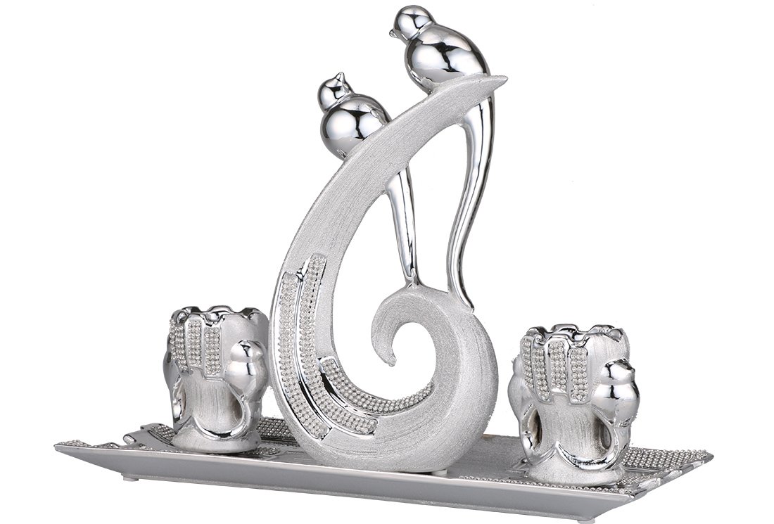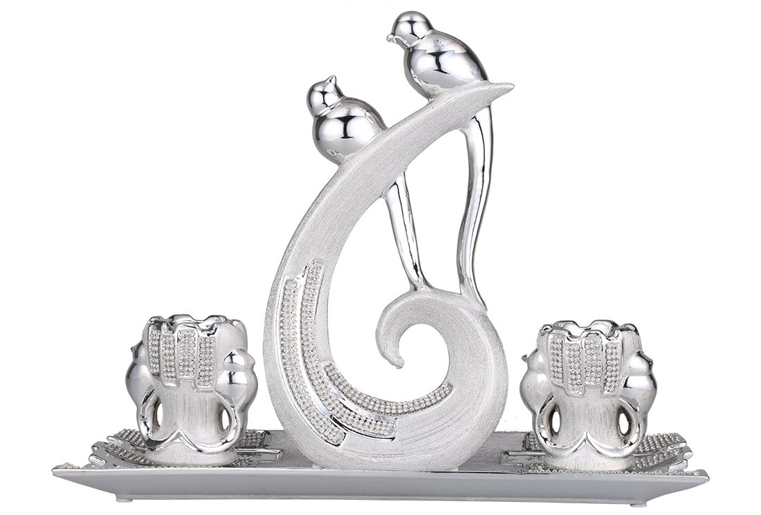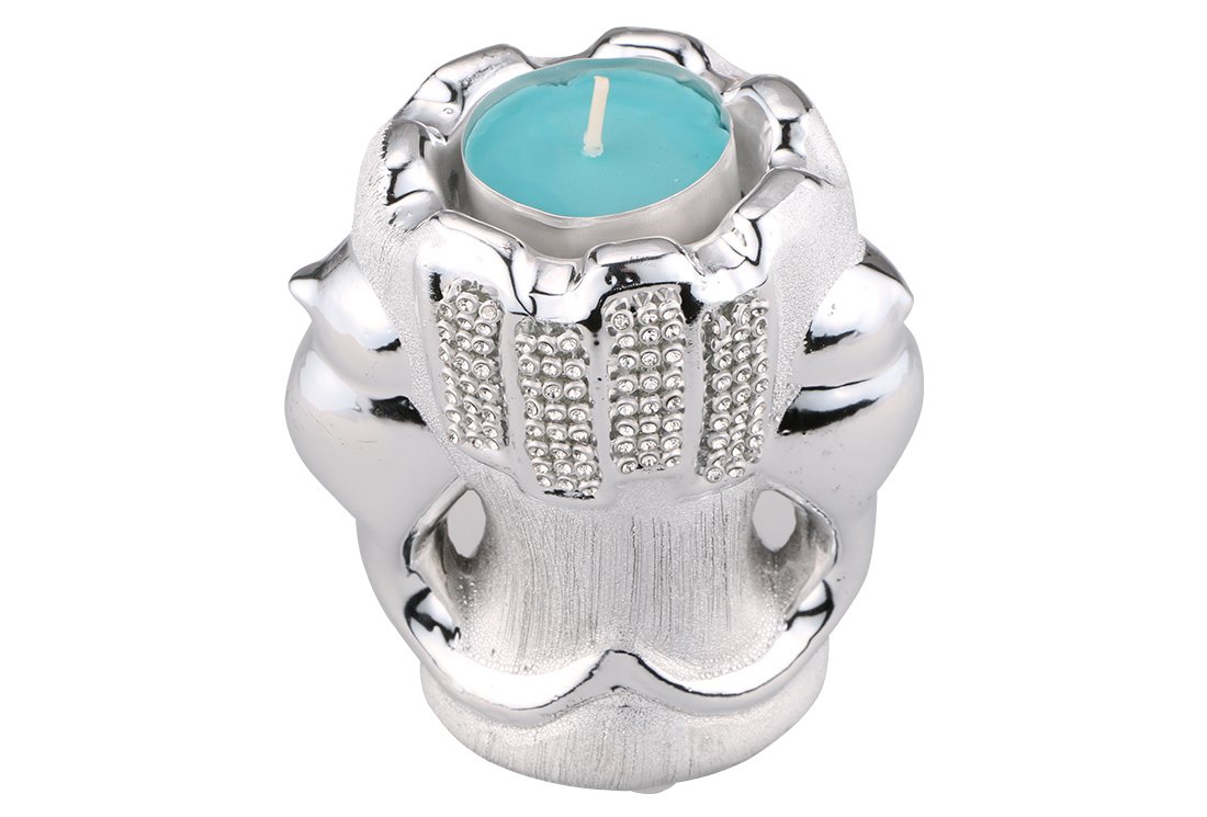 Teslimat ve Boyutlar: 1 x Almina 4 Parça Porselen Dekoratif Mumluk | Gümüş | Al-4151-s