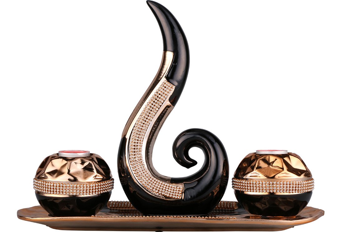 Teslimat ve Boyutlar: 1 x Almina 4 Parça Porselen Dekoratif Mumluk | Siyah Bakır | Al-2553-b
