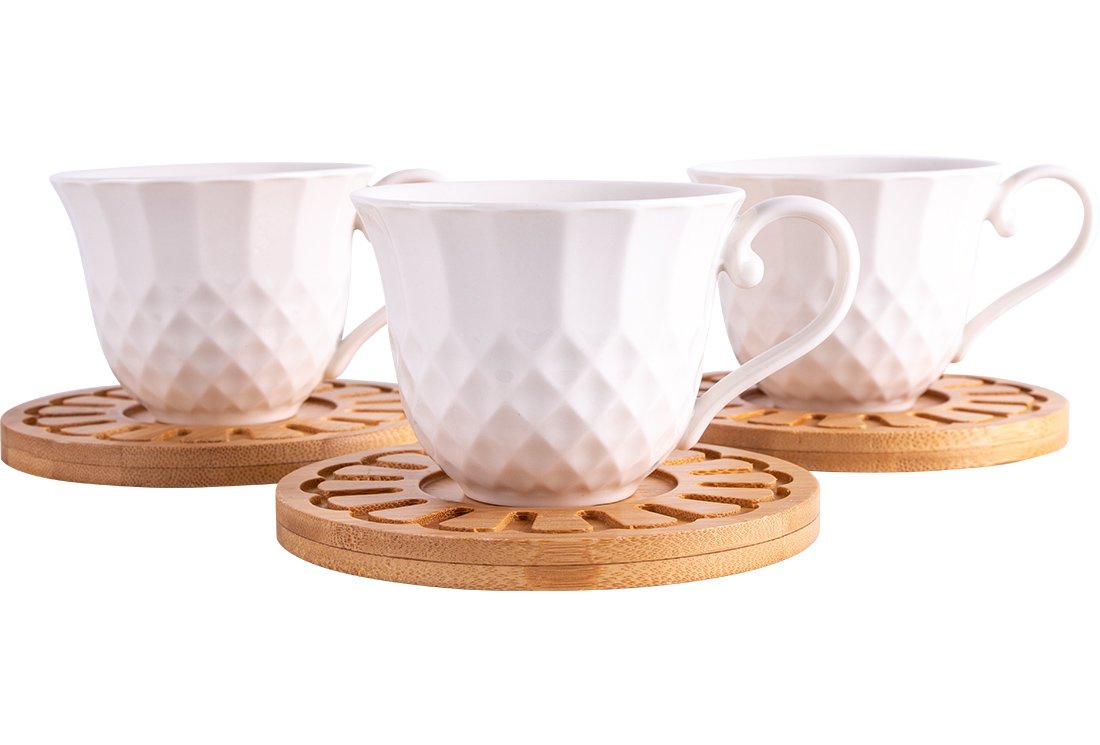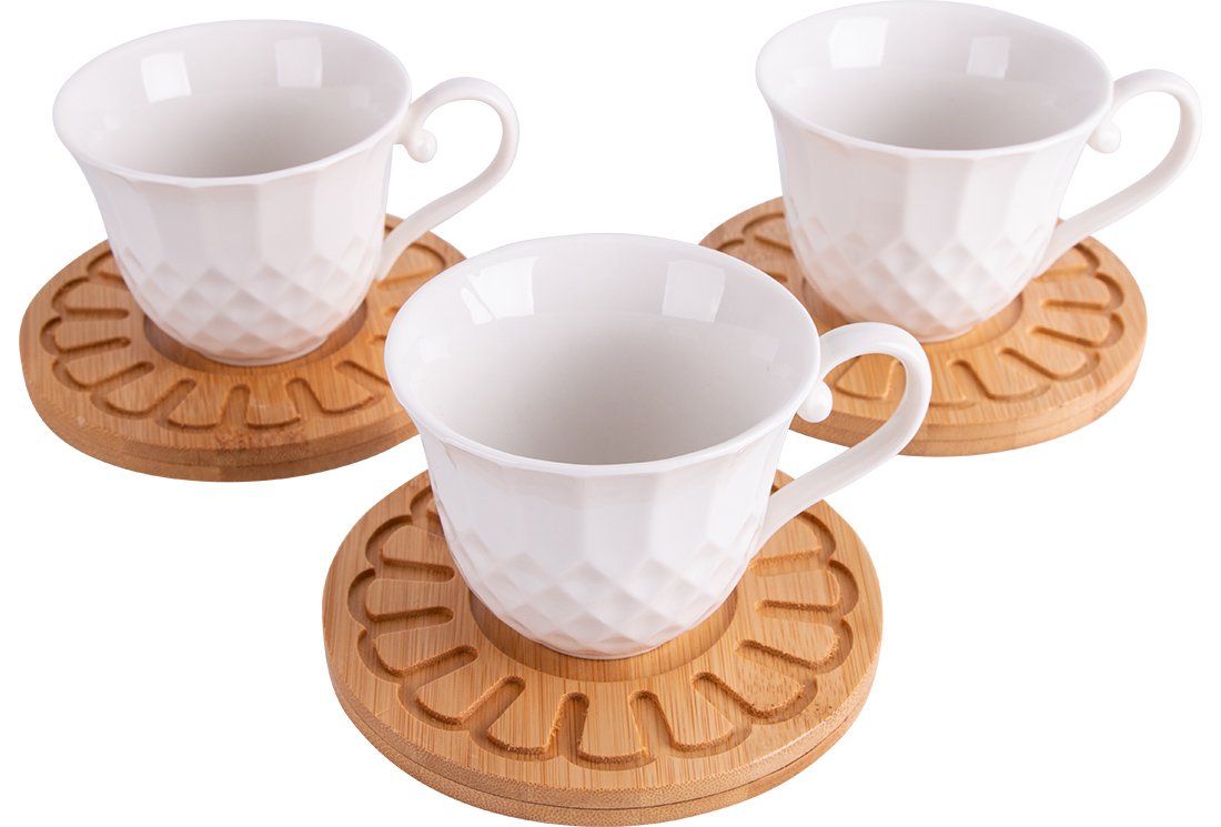 Teslimat ve Boyutlar: 1 x Almina 6'lı Büyük Kahve Seti Bambu Porselen 175ml | Beyaz | Al-4083