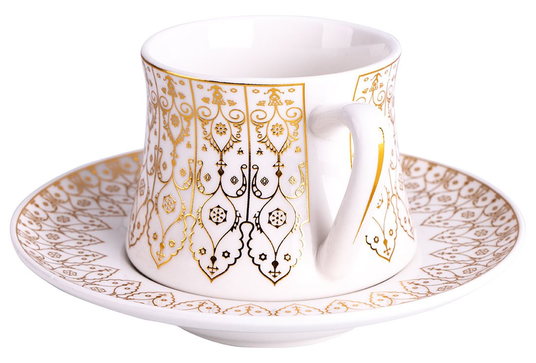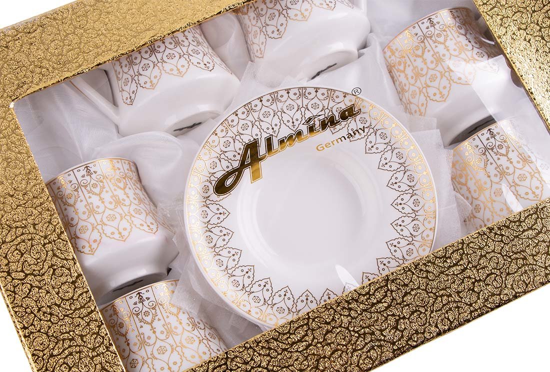 Teslimat ve Boyutlar: 1 x Almina 6'lı Büyük Kahve Seti Porselen 175ml | Beyaz Altın | Al-5875