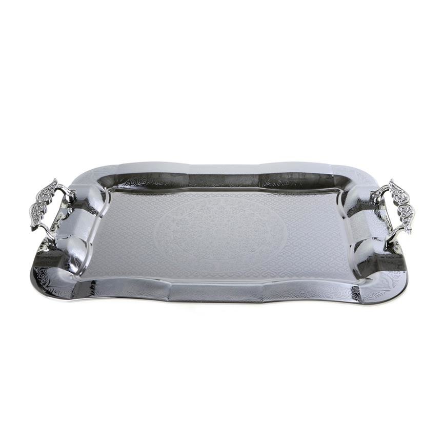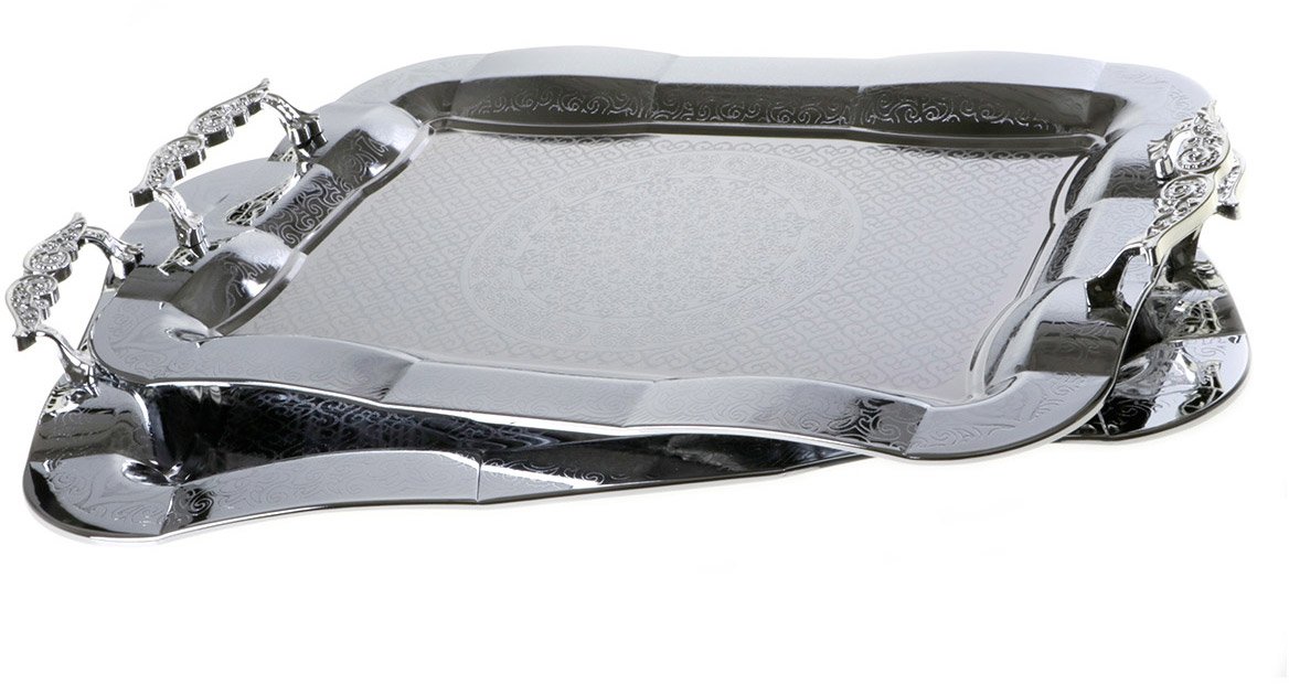 Teslimat: 1 x Almina Elegant Büyük Tepsi Seti 2 Parça Gümüş Kap Desen