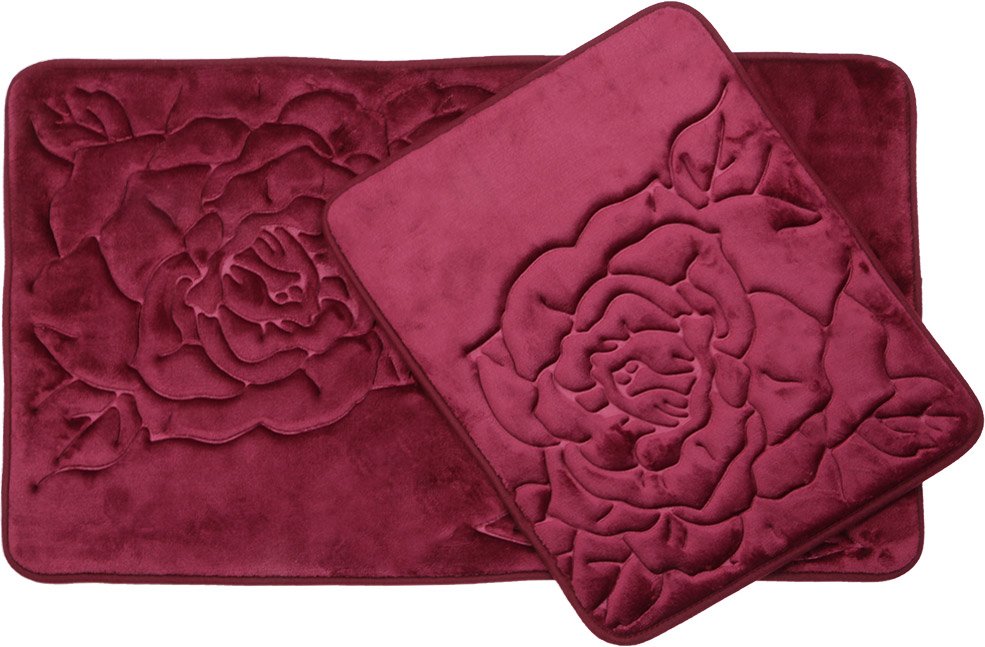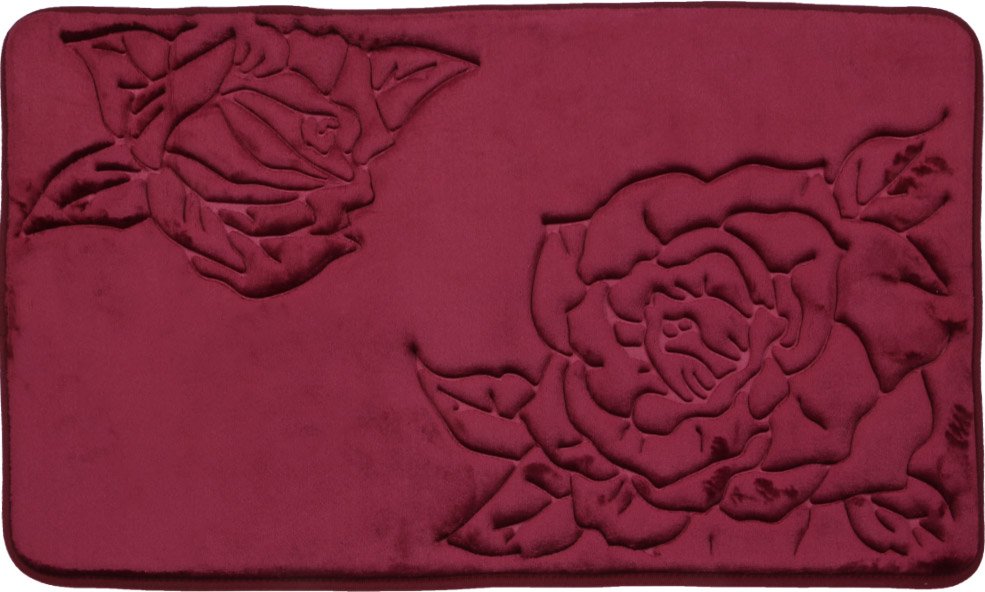 Teslimat ve Boyutlar: 1 x Almina Premium Gül Desenli Banyo Paspas Seti 2 Parça Midi | Bordo