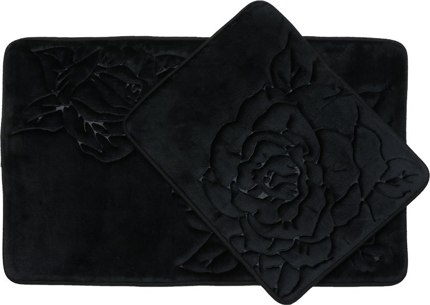 Teslimat ve Boyutlar: 1 x Almina Premium Gül Desenli Banyo Paspas Seti 2 Parça Midi | Siyah