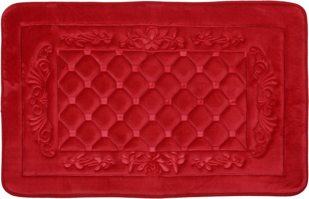 Teslimat ve Boyutlar: 1 x Almina Premium Kare Desen Banyo Paspas Seti 2 Parça Midi | Kırmızı