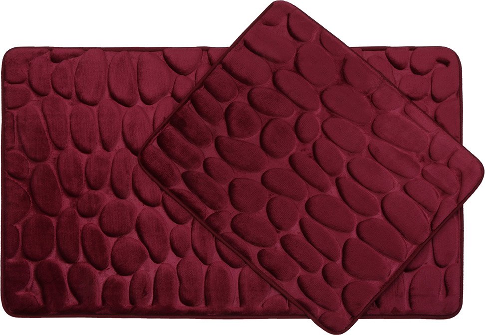 Teslimat ve Boyutlar: 1 x Almina Premium Taş Desenli Banyo Paspas Seti 2 Parça Maxi | Bordo