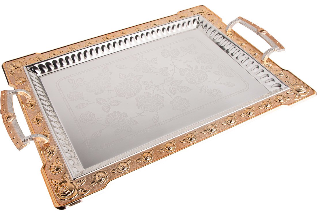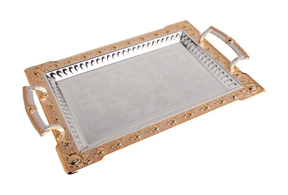 Teslimat: 1x Almina Tepsi Seti | 2'li | Gümüş Altın | AL-0962-2-G