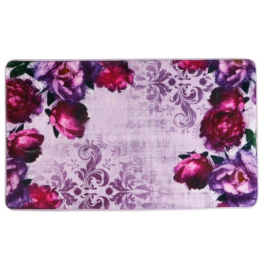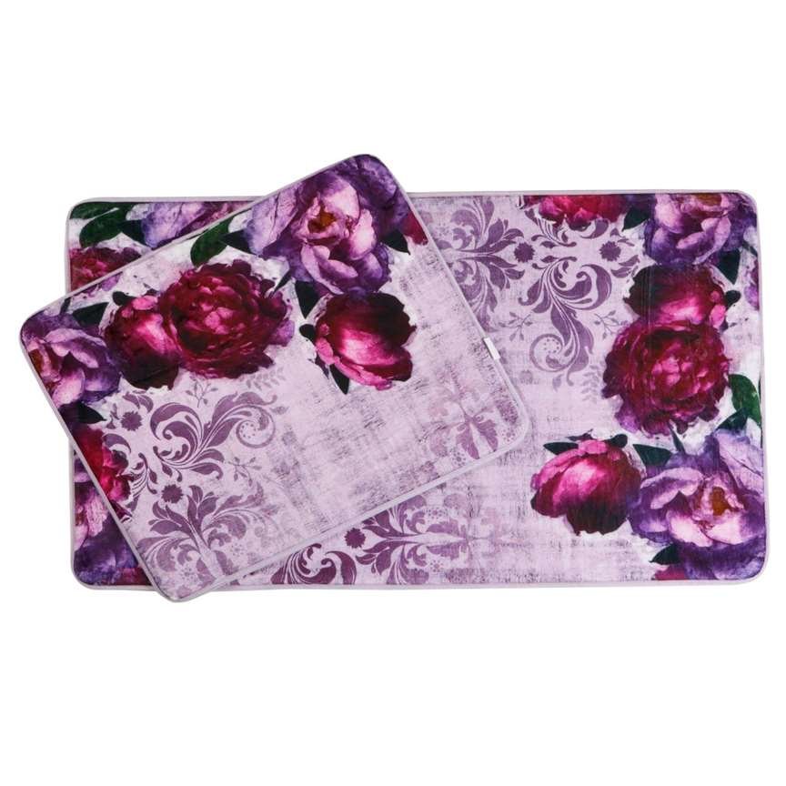 - Banyo halı 60x100cm - Tuvalet paspası 60x50cm Teslimat: 1x Almina Vintage Banyo Seti 2 Parça Mor Gül Desenli