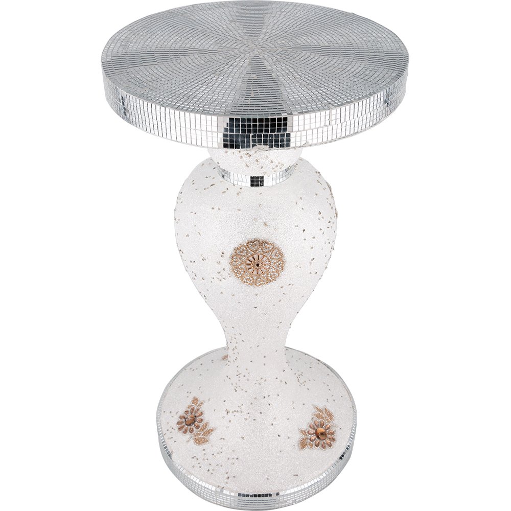 Teslimat: 1 x Almina | XL Dekoratif Masa | Aynalı | Beyaz | Altın Dekorlu | Al-3895