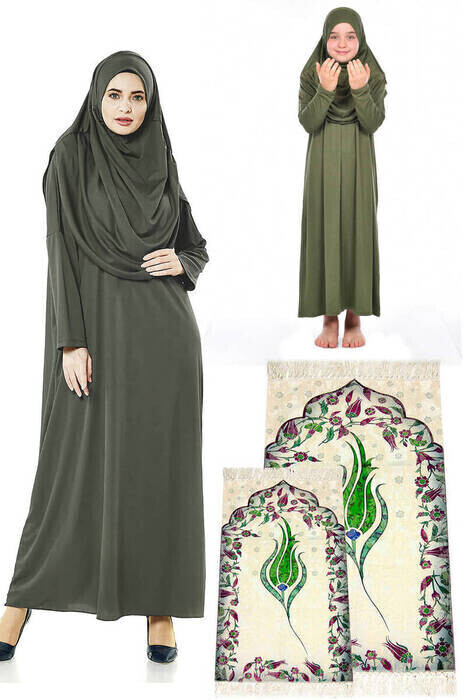 Buna dair başka bağlantılar "Anne Kız Tek Parça Namaz Elbisesi Seccade Set 2"