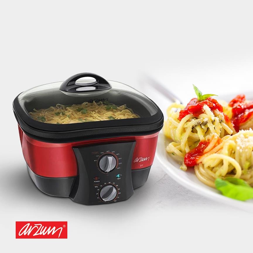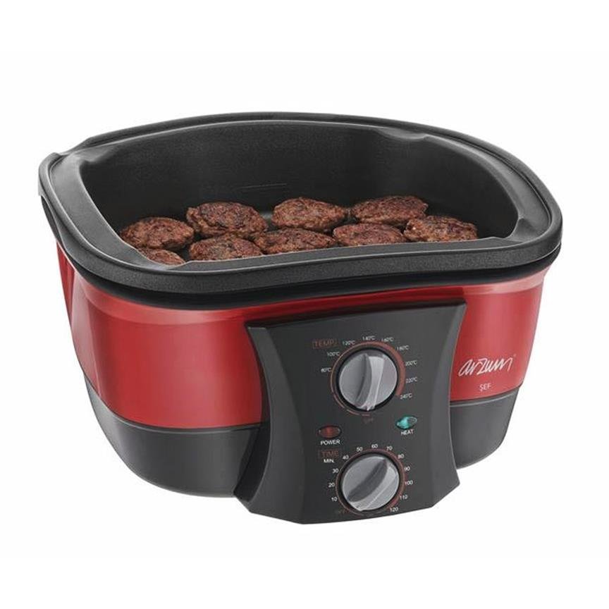 Teslimat: 1 x Arzum Şef Çok Fonksiyonlu Pişirici Fritöz | 1500W | Kırmızı | AR276