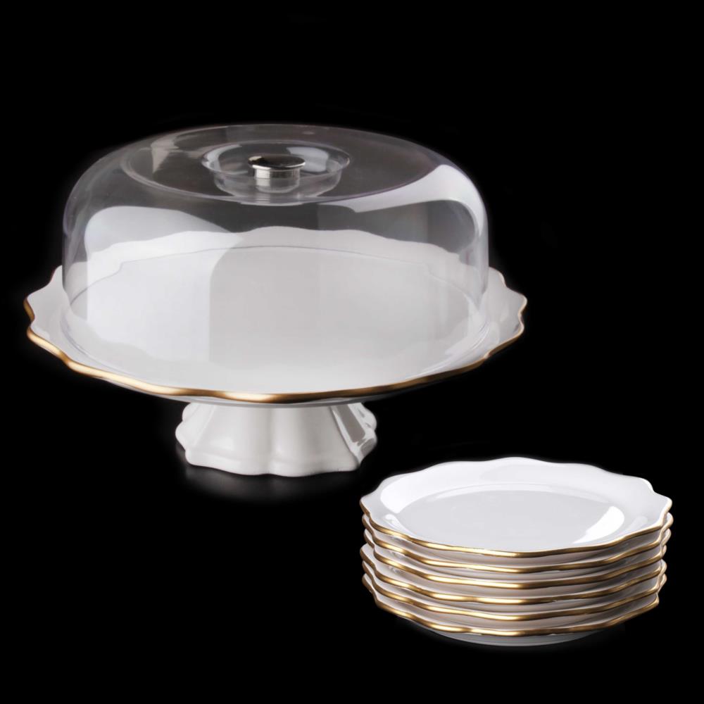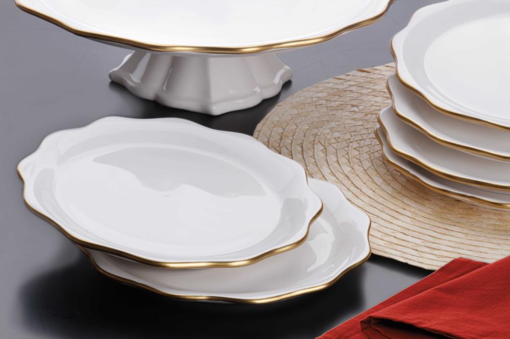 Asaf Seramik 8 Parça Beyaz- Gold Pasta İkram Seti