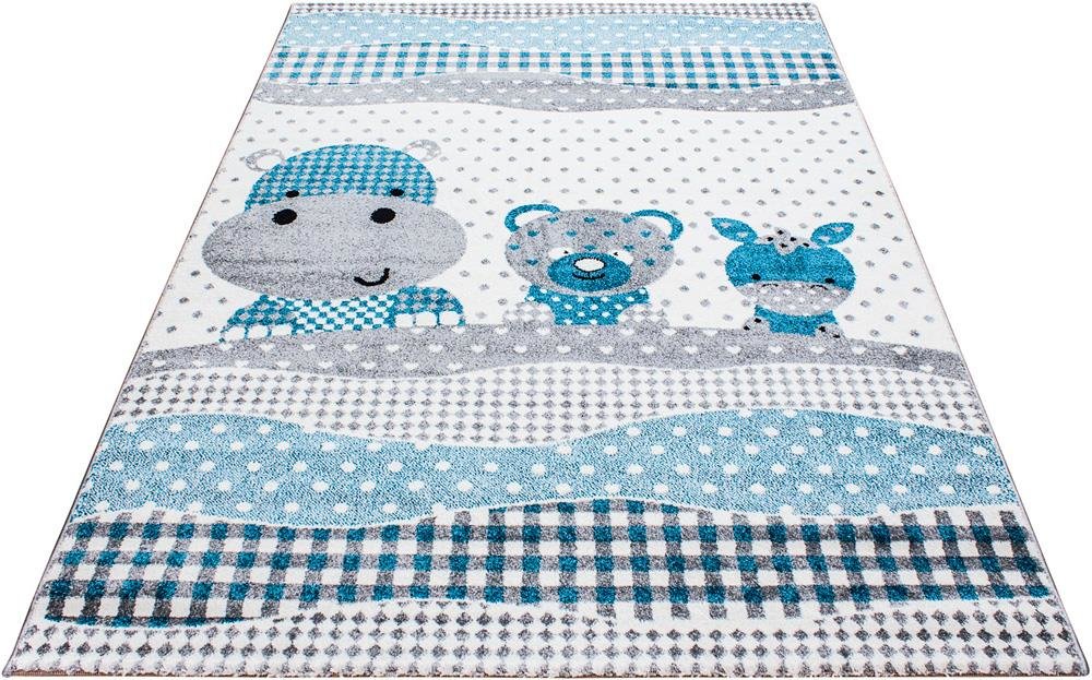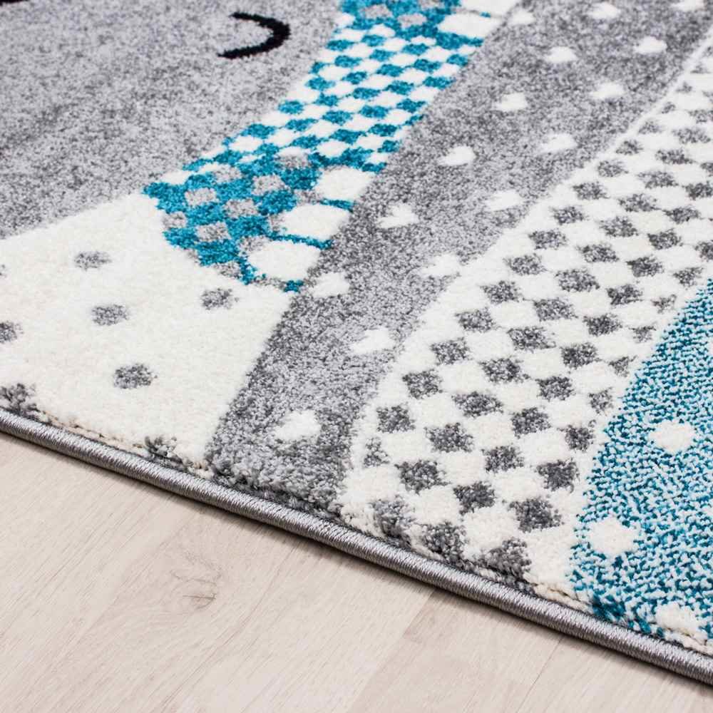 Boyutlar & Teslimat: 1x Ayyıldız Kids Hayvan Desenli Çocuk Halısı 100% PP Frise 11mm 2500 gr | Gri - Mavi | 530Grey
