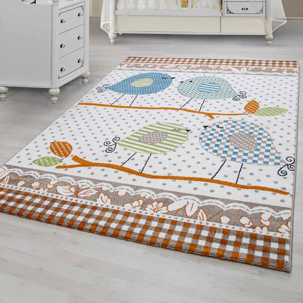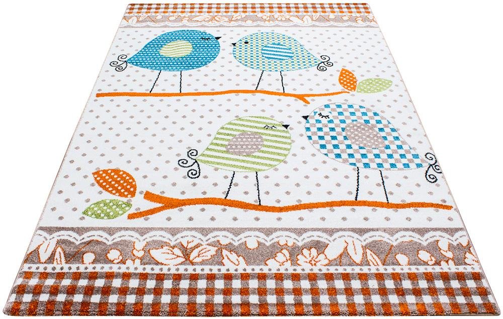 Boyutlar & Teslimat: 1x Ayyıldız Kids Marine Kuş Desenli Çocuk Halısı 100% PP Frise 11mm 2500 gr | Bej - Turuncu | 520Beige