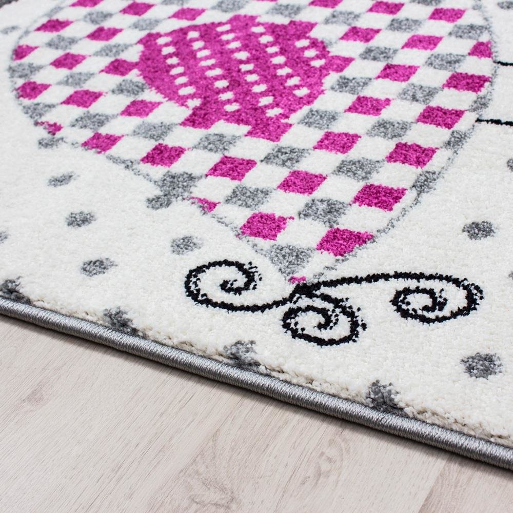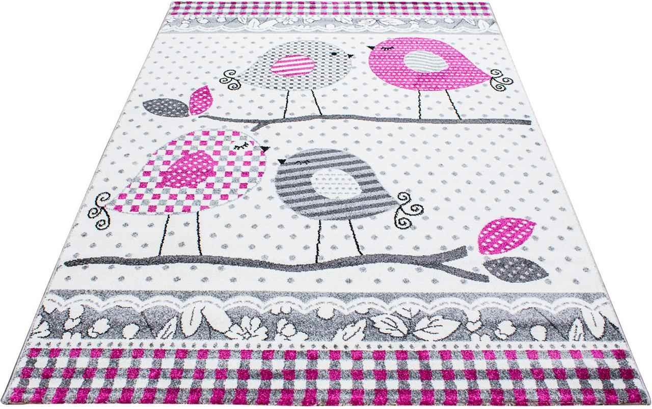 Boyutlar & Teslimat: 1x Ayyıldız Kids Vogelmotiv Kuş Desenli Çocuk Halısı 100% PP Frise 11mm 2500 gr | Gri - Pembe | 520Gr