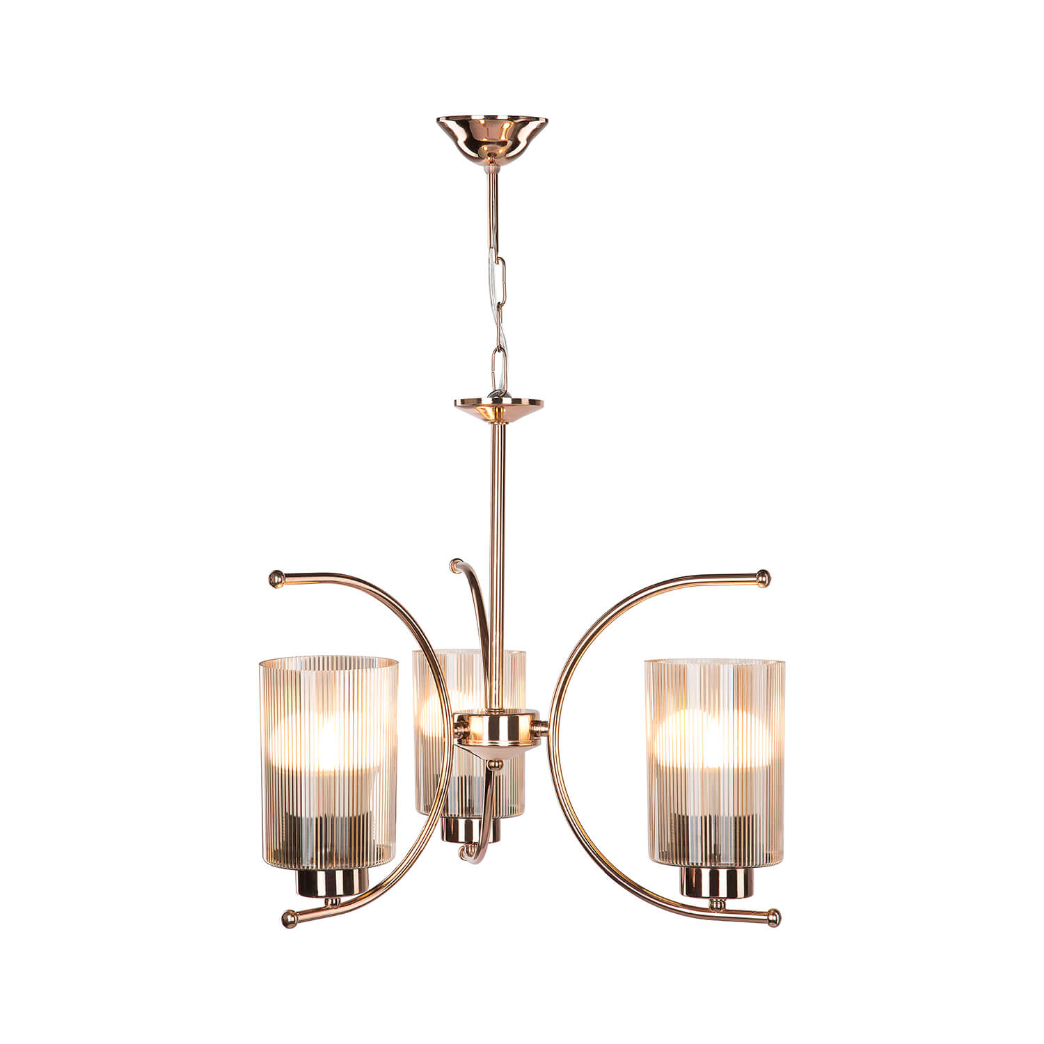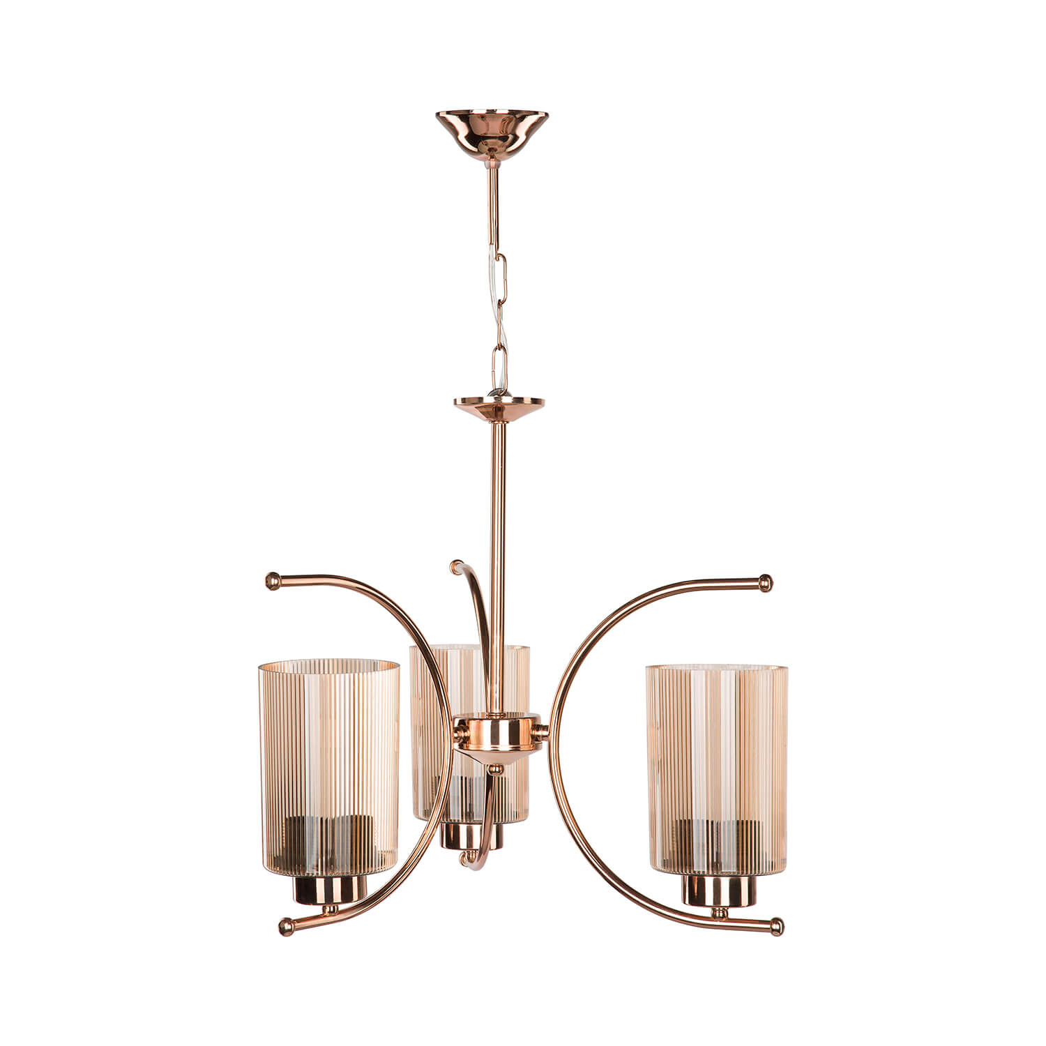 •Paslanmaz Metal kasa üzerine bakır renk avize 3 adet optik desenli cam bulunmaktadır.