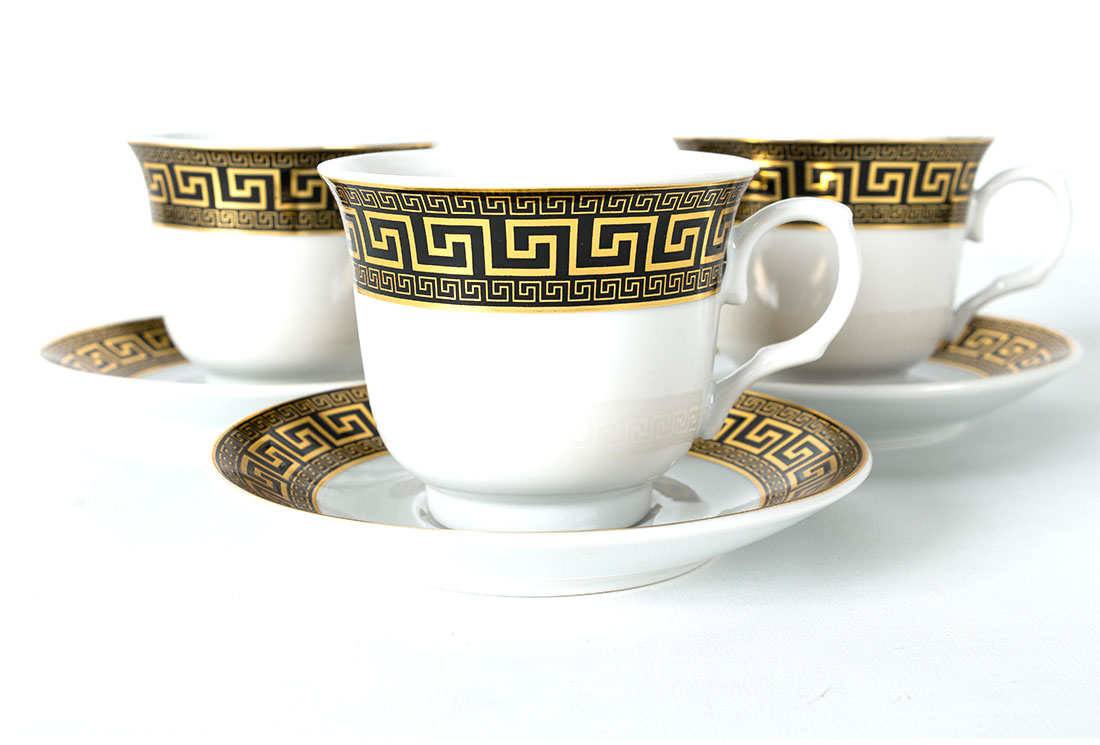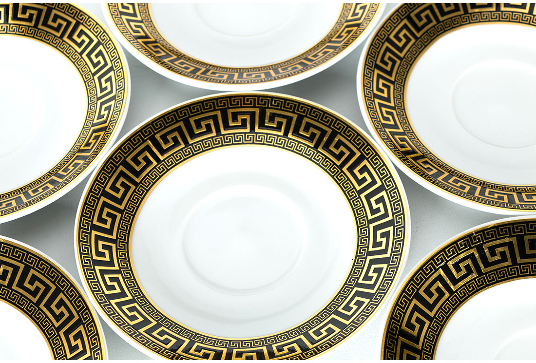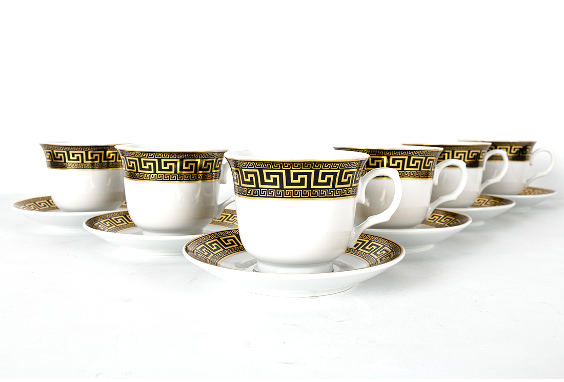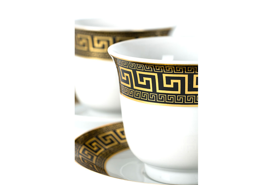 Teslimat ve Boyutlar: 1x Bavary 12 Parça Fincan Seti | 6 Kişilik | Desenli | Altın & Siyah | Modern Tasarım