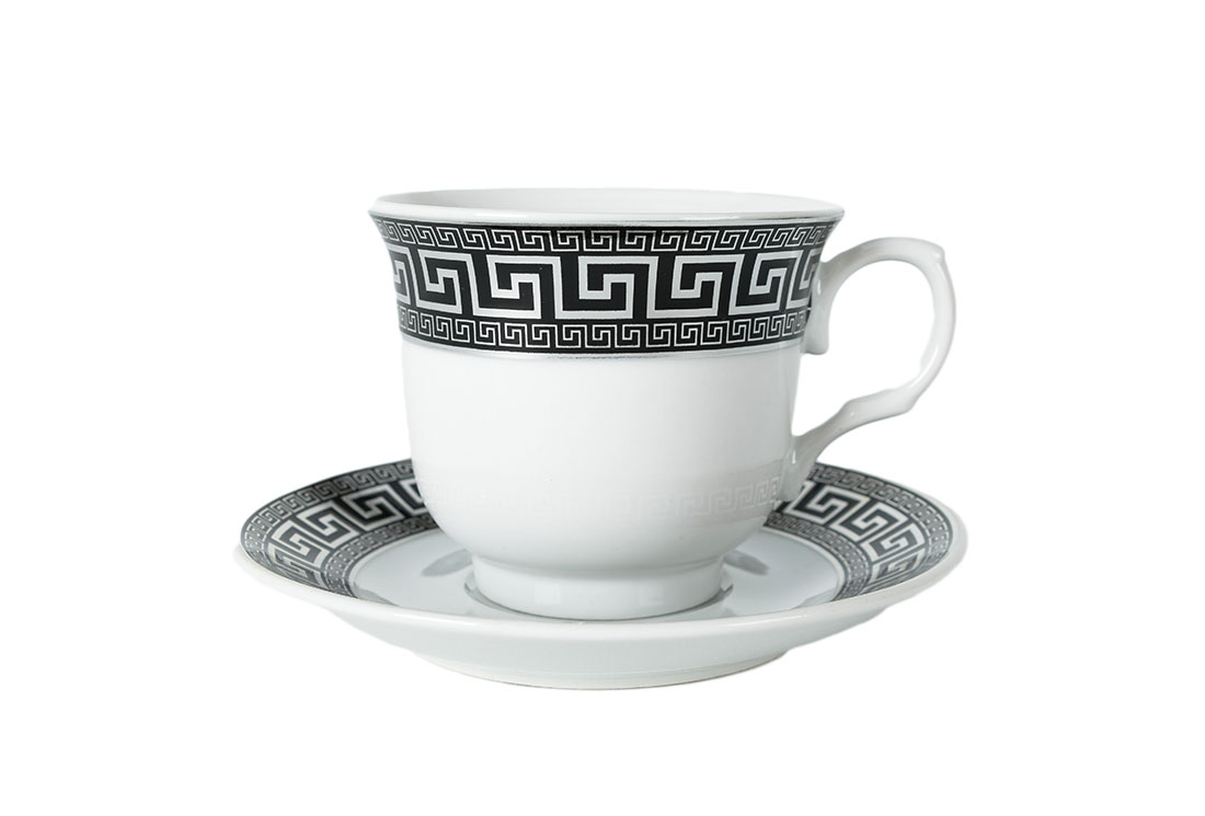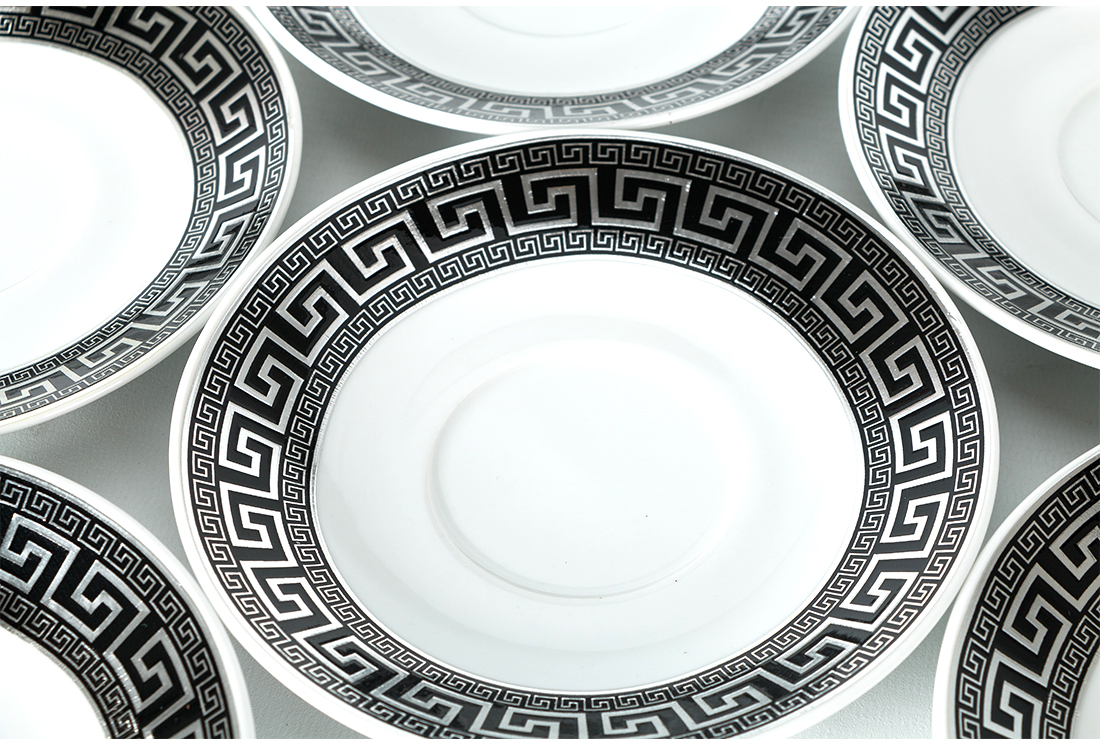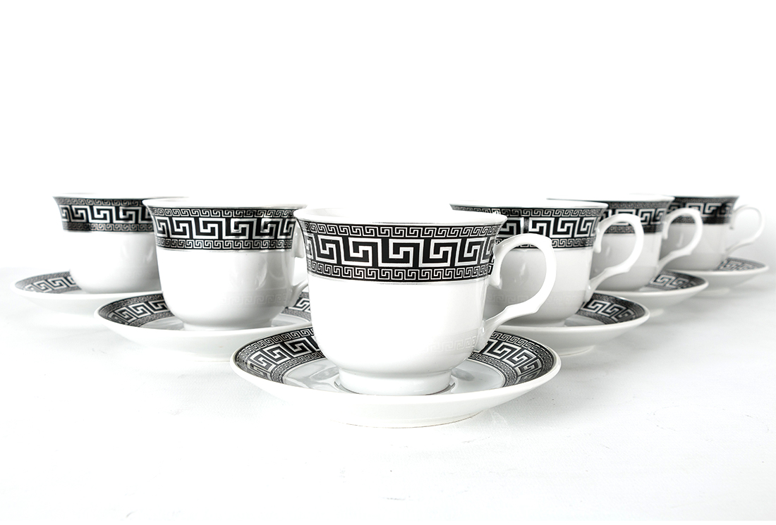 Teslimat ve Boyutlar: 1x Bavary 12 Parça Fincan Seti | 6 Kişilik | Desenli | Gümüş & Siyah | Modern Tasarım