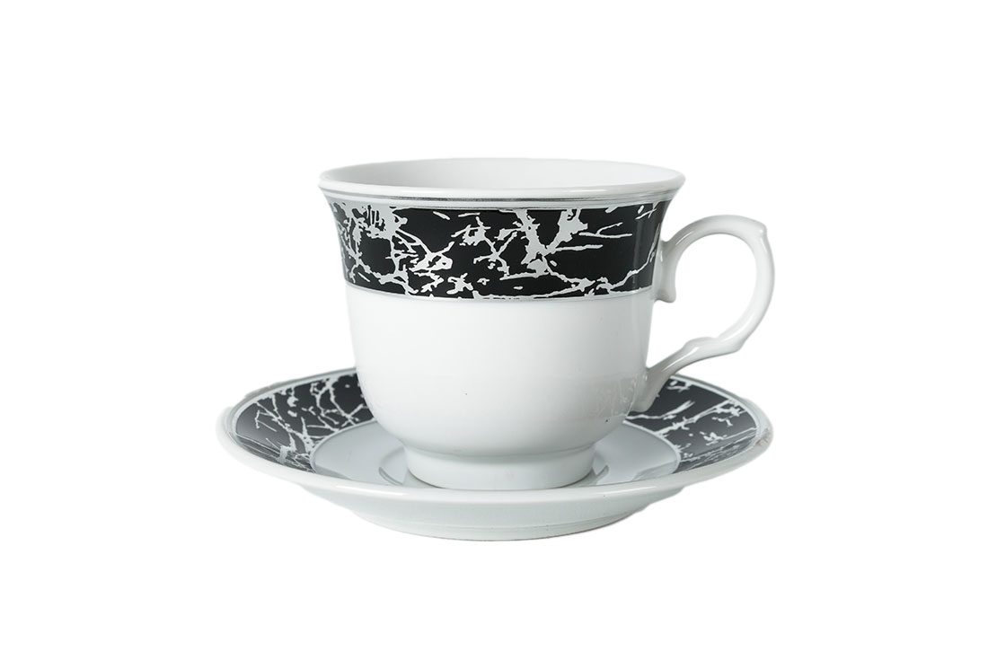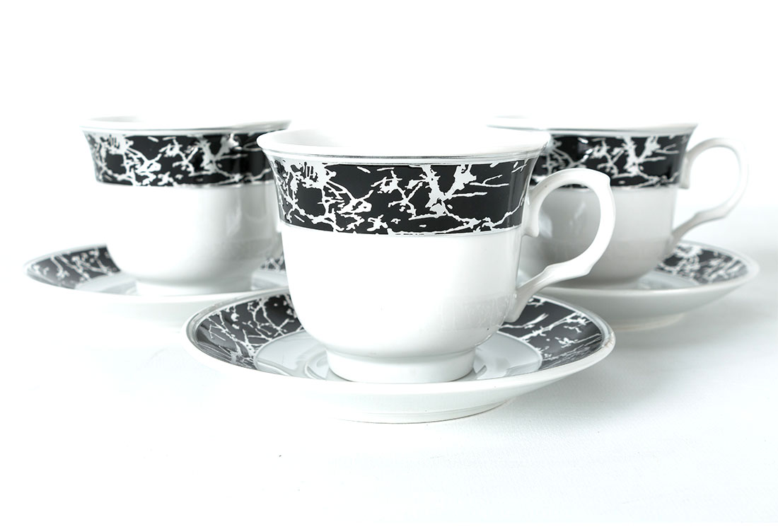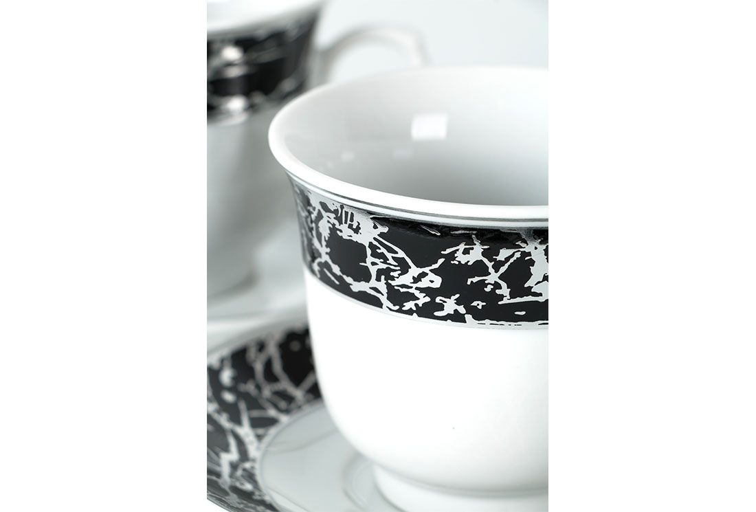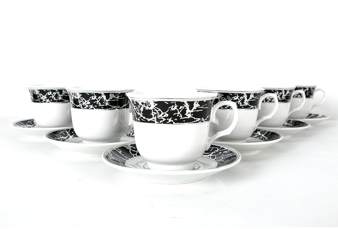 Teslimat ve Boyutlar: 1x Bavary 12 Parça Fincan Seti | 6 Kişilik | Mermer Desenli | Siyah | Modern Tasarım