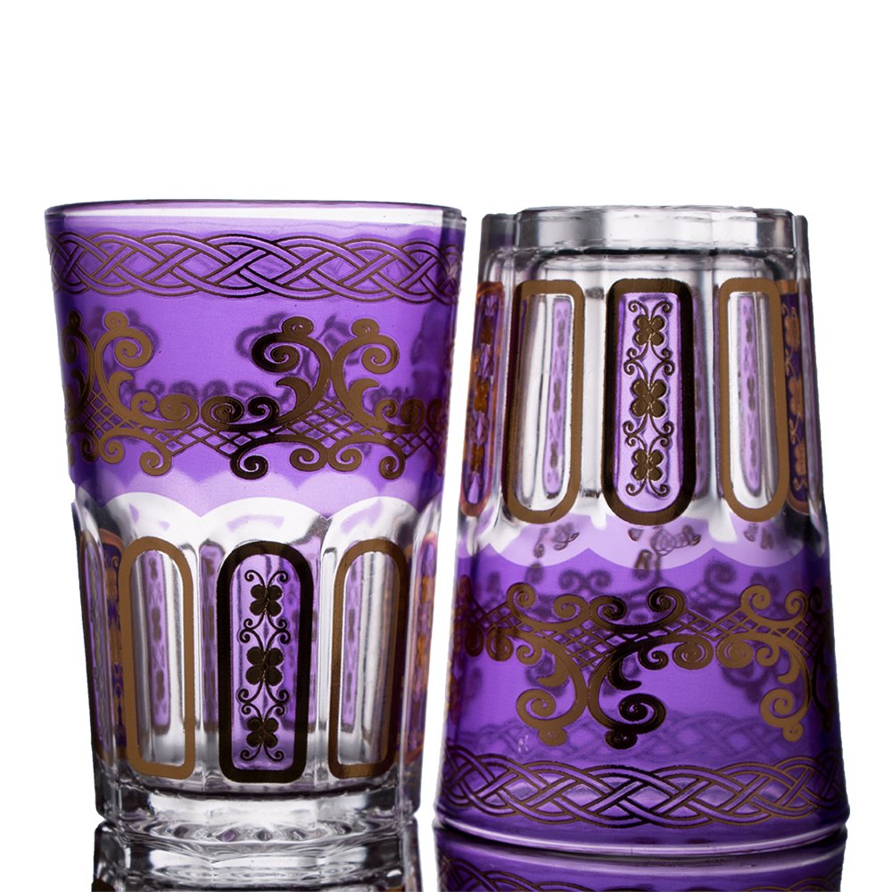 Bavary | Desenli Bardak | 12 Adet | Mor-Altın | By-2307-9