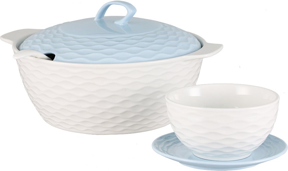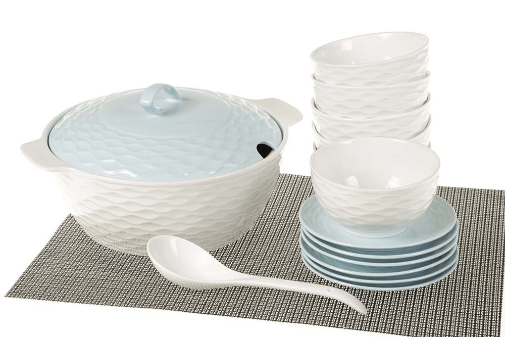 Teslimat: 1x Bavary Fas 15 Parça Porselen Çorba Seti | Beyaz Mavi | 6 Kişilik | B4