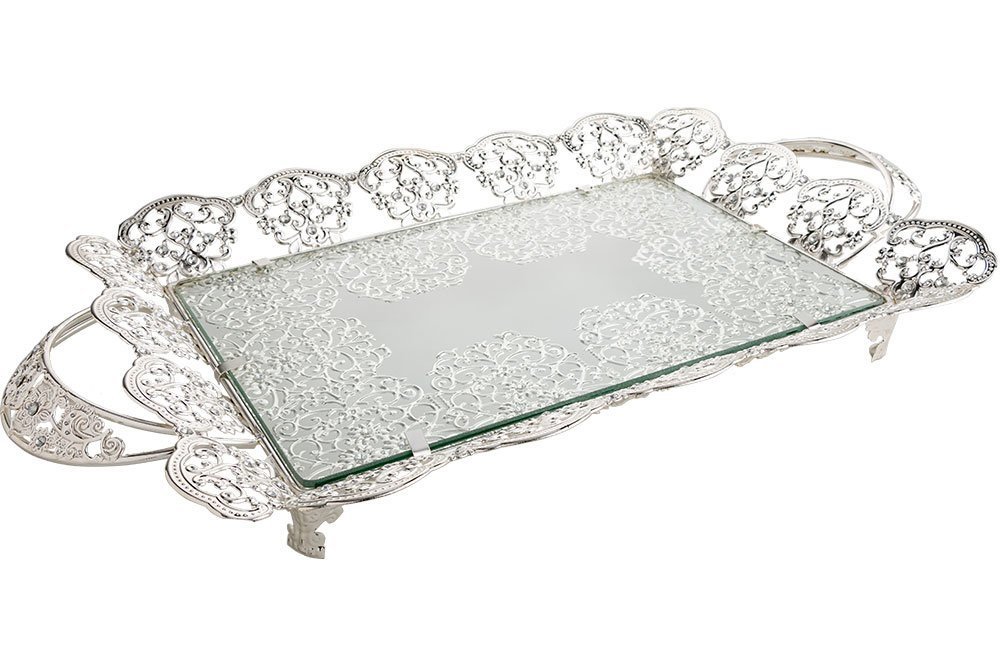 Teslimat: 1 x Bavary | Kulplu Metal ve Cam Tepsi | By-934-S