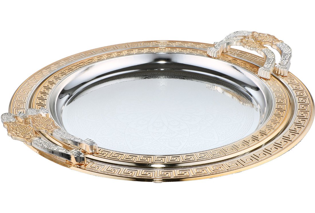 Teslimat: 1x Bavary Tepsi | 2'li | Yuvarlak | Altın & Gümüş | By-3107d