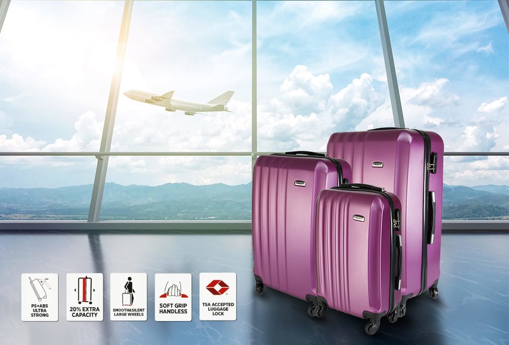 Teslimat ve Boyutlar: 1 x Bay Walker Hard Case 3'lü Lüks Bavul Seti 360° Dönen Tekerlekli | Mor | TSA Kilitli | C621-Purple