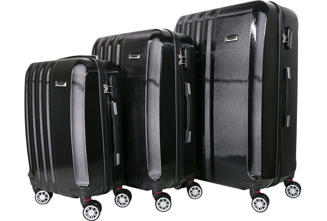 Teslimat ve Boyutlar: 1 x Bay Walker Hard Case 3'lü Lüks Bavul Seti 360° Dönen Tekerlekli | Siyah | TSA Kilitli