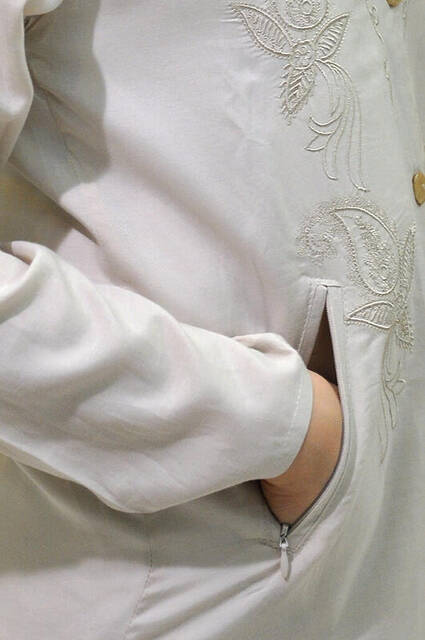 Berat Bej Rengi Hac ve Umre Kıyafeti. Önden düğmeli. Ürünün önünde çiçek nakışı bulunmaktadır....daha fazla bilgi