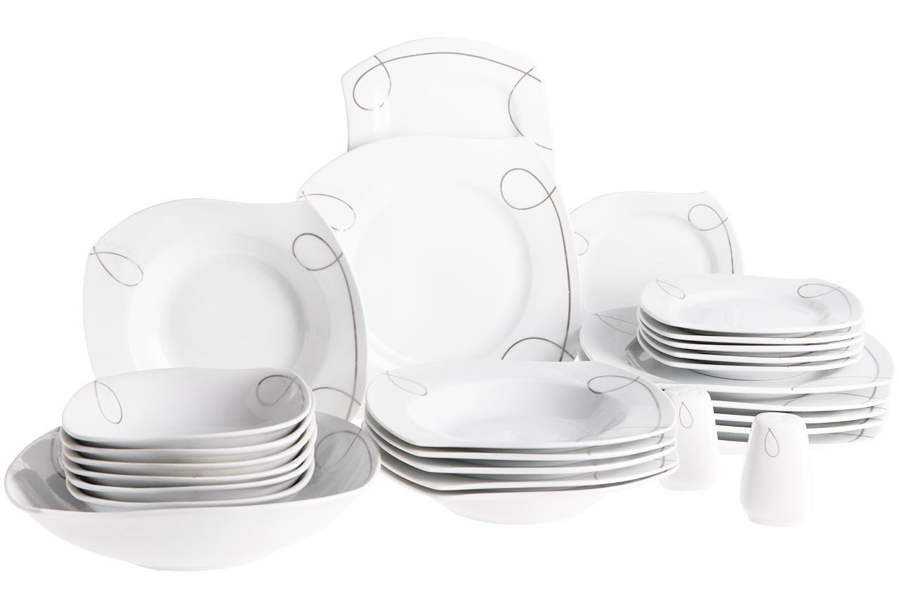Teslimat: 1x Beyazca 28 Parça Tuana S-Şekil Porselen Yemek Takımı | 6 Kişilik | TUANA-28