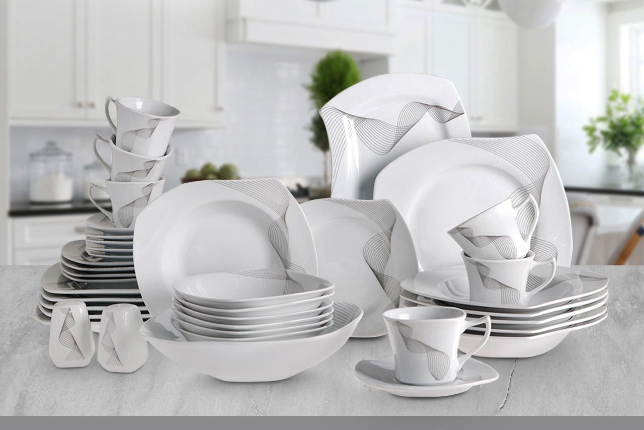 Teslimat ve Boyutlar: 1 x Beyazca 40 Parça Eda Porselen Yemek Takımı | 6 Kişilik | EDA-40