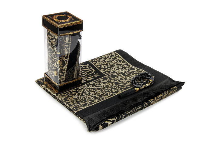 Biricik Anneme Seccadeli - İnci Tesbihli - Pencereli Kutulu Set Siyah Renk