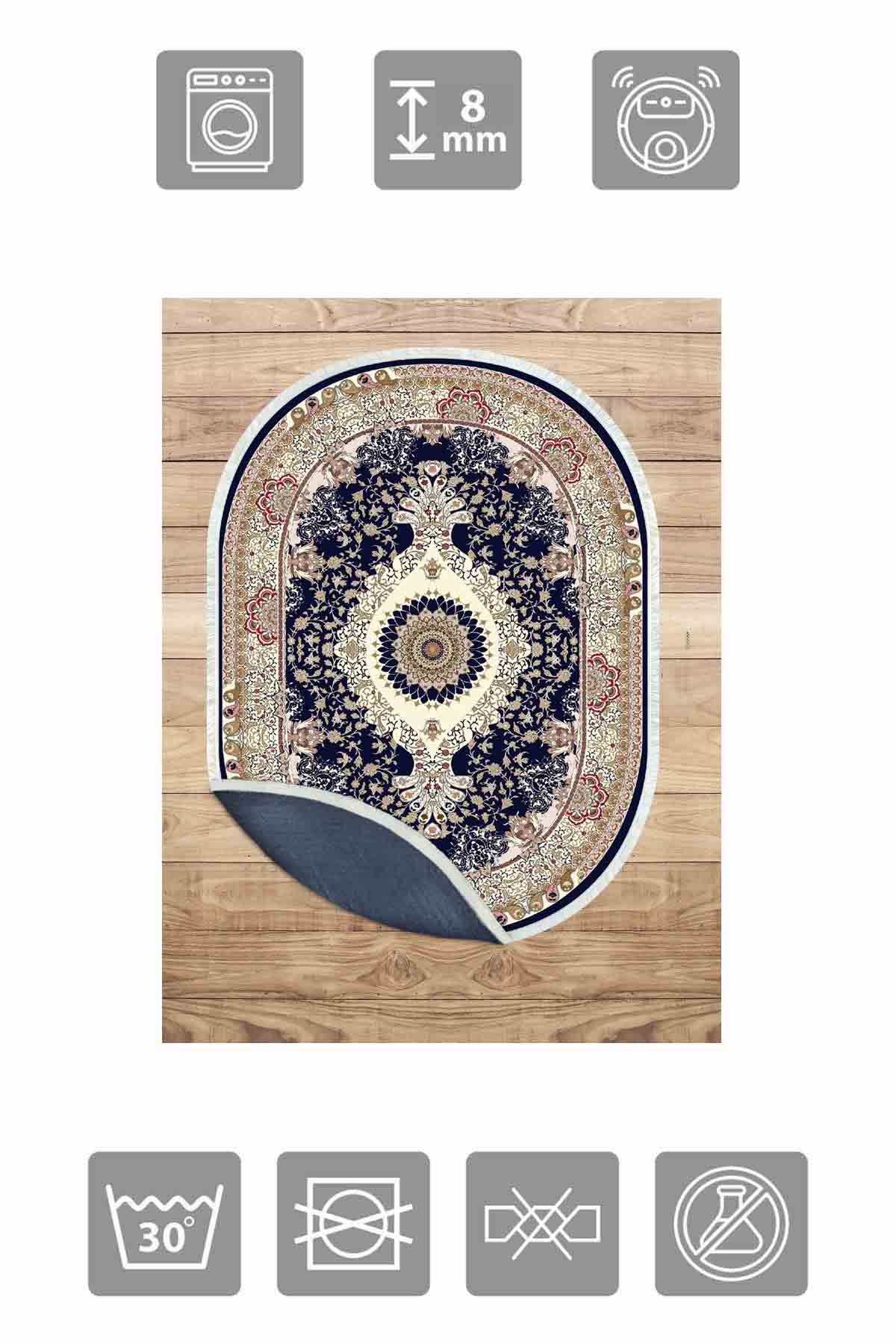 Boyutlar & Teslimat: 1x Birkilim Oval Yıkanabilir İpeksi Kaymaz Taban Dekoratif Halı | MLN-IP-O-HK-029
