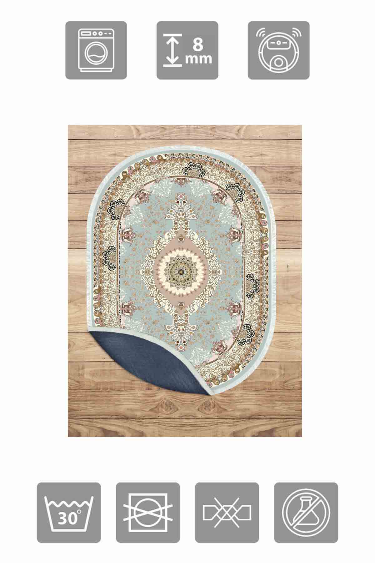 Boyutlar & Teslimat: 1x Birkilim Oval Yıkanabilir İpeksi Kaymaz Taban Dekoratif Halı | MLN-IP-O-HK-030
