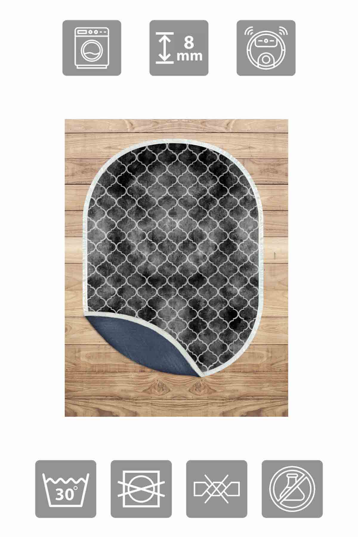 Boyutlar & Teslimat: 1x Birkilim Oval Yıkanabilir İpeksi Kaymaz Taban Dekoratif Halı | MLN-IP-O-HS-366
