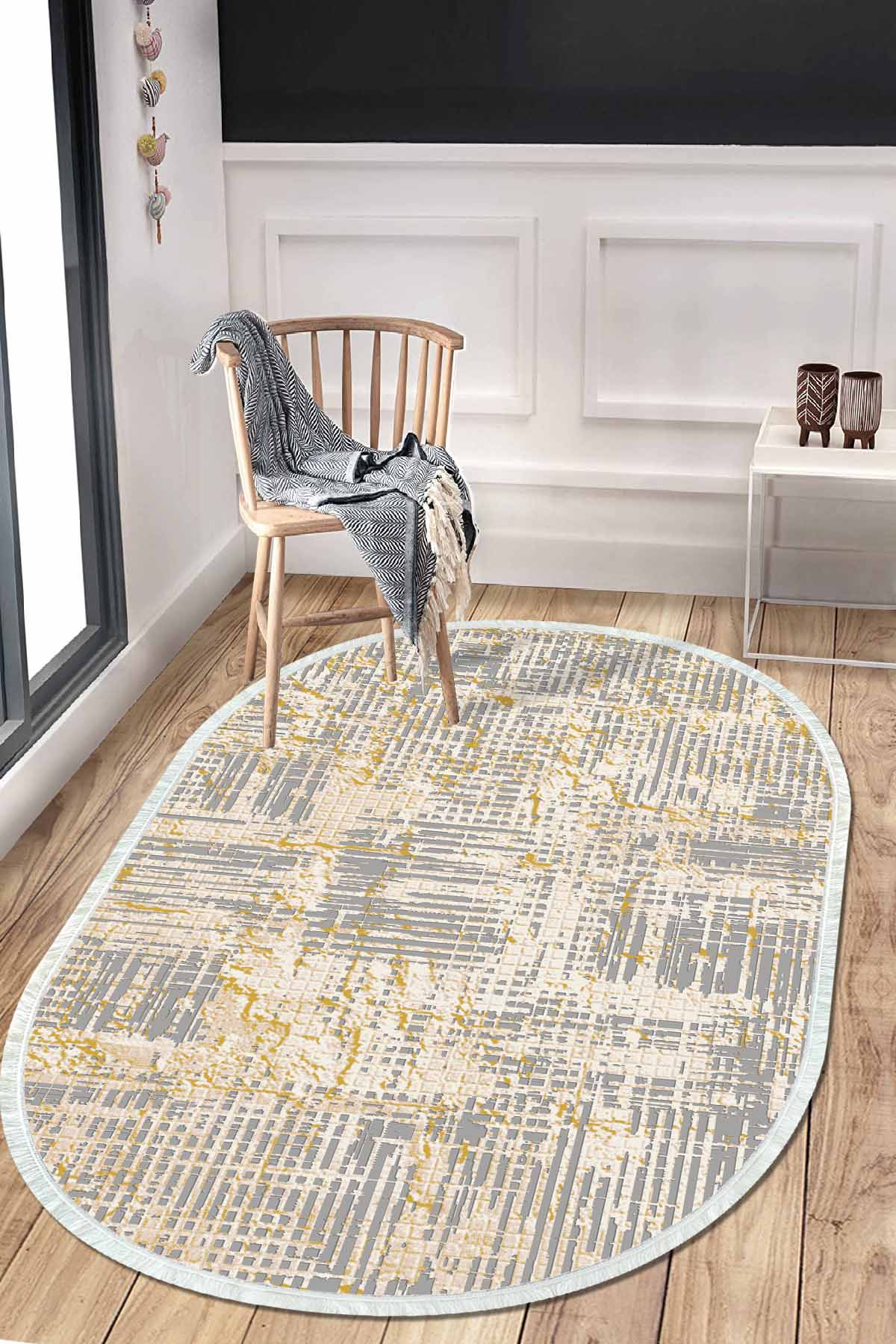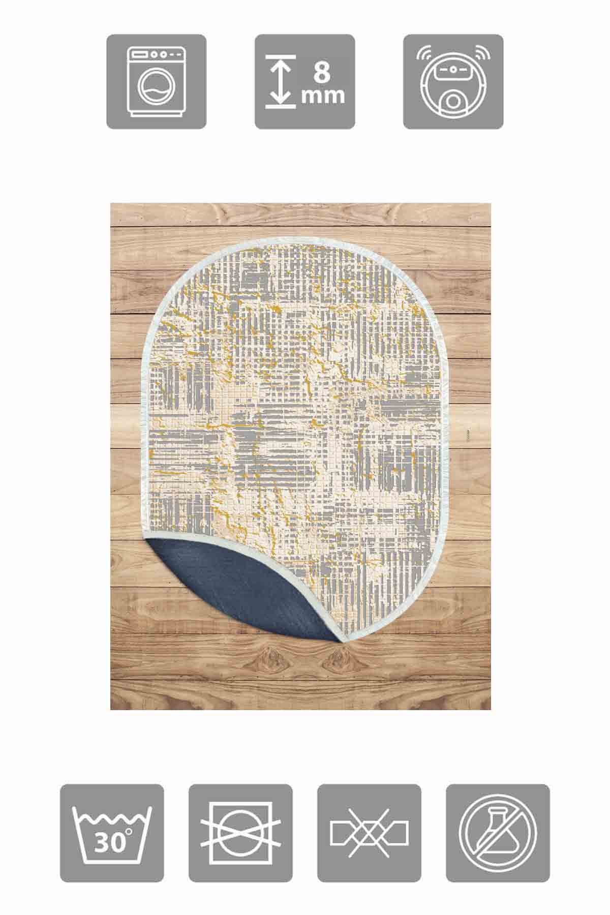 Boyutlar & Teslimat: 1x Birkilim Oval Yıkanabilir İpeksi Kaymaz Taban Dekoratif Halı | MLN-IP-O-HT-035