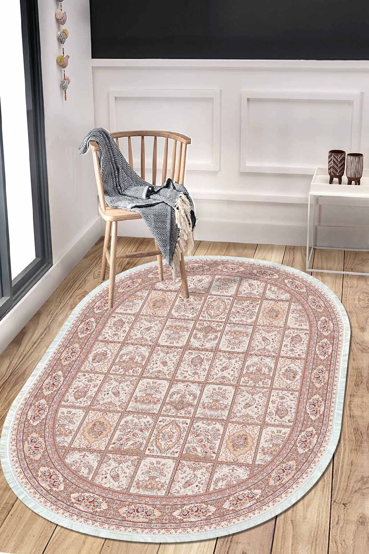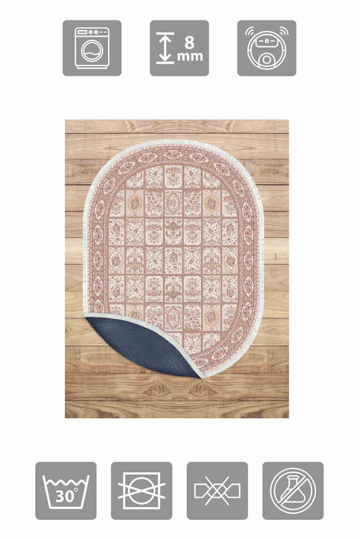 Birkilim Oval Yıkanabilir İpeksi Kaymaz Taban Dekoratif Halı | MLN-IP-O-HT-047
