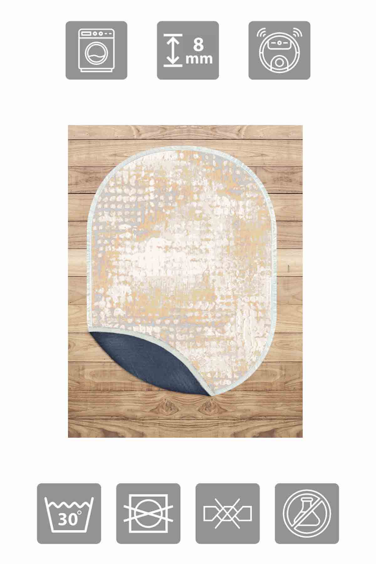 Boyutlar & Teslimat: 1x Birkilim Oval Yıkanabilir İpeksi Kaymaz Taban Dekoratif Halı | MLN-IP-O-HT-086