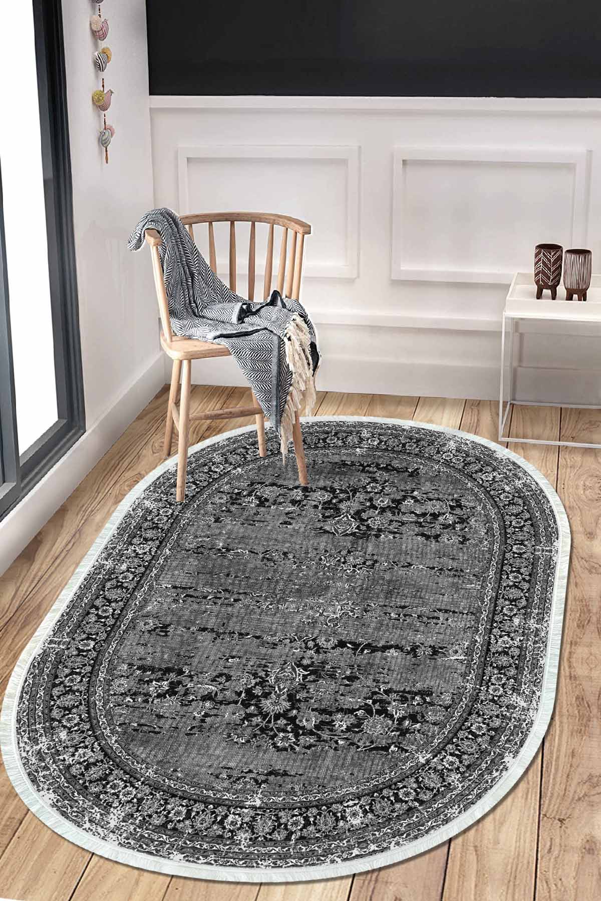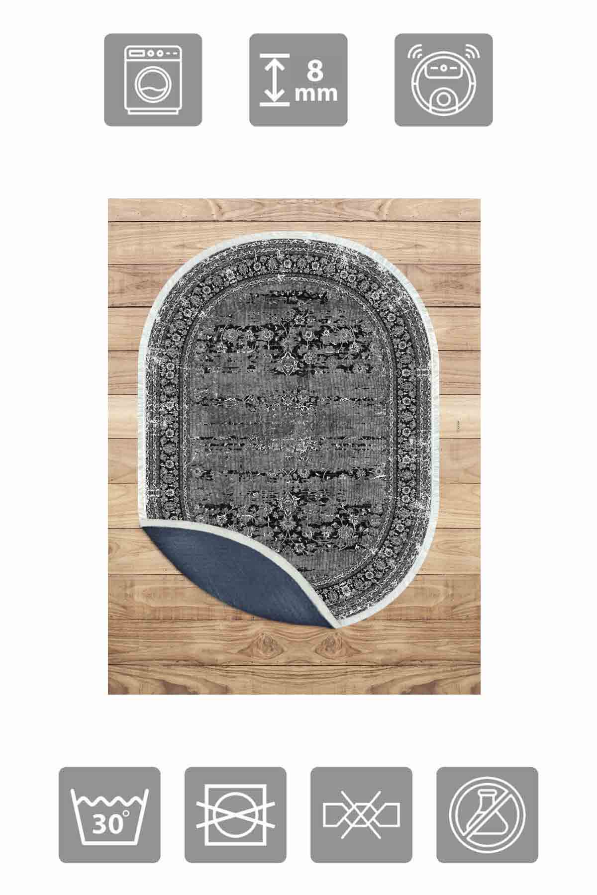 Boyutlar & Teslimat: 1x Birkilim Oval Yıkanabilir İpeksi Kaymaz Taban Dekoratif Halı | MLN-IP-O-HT-126